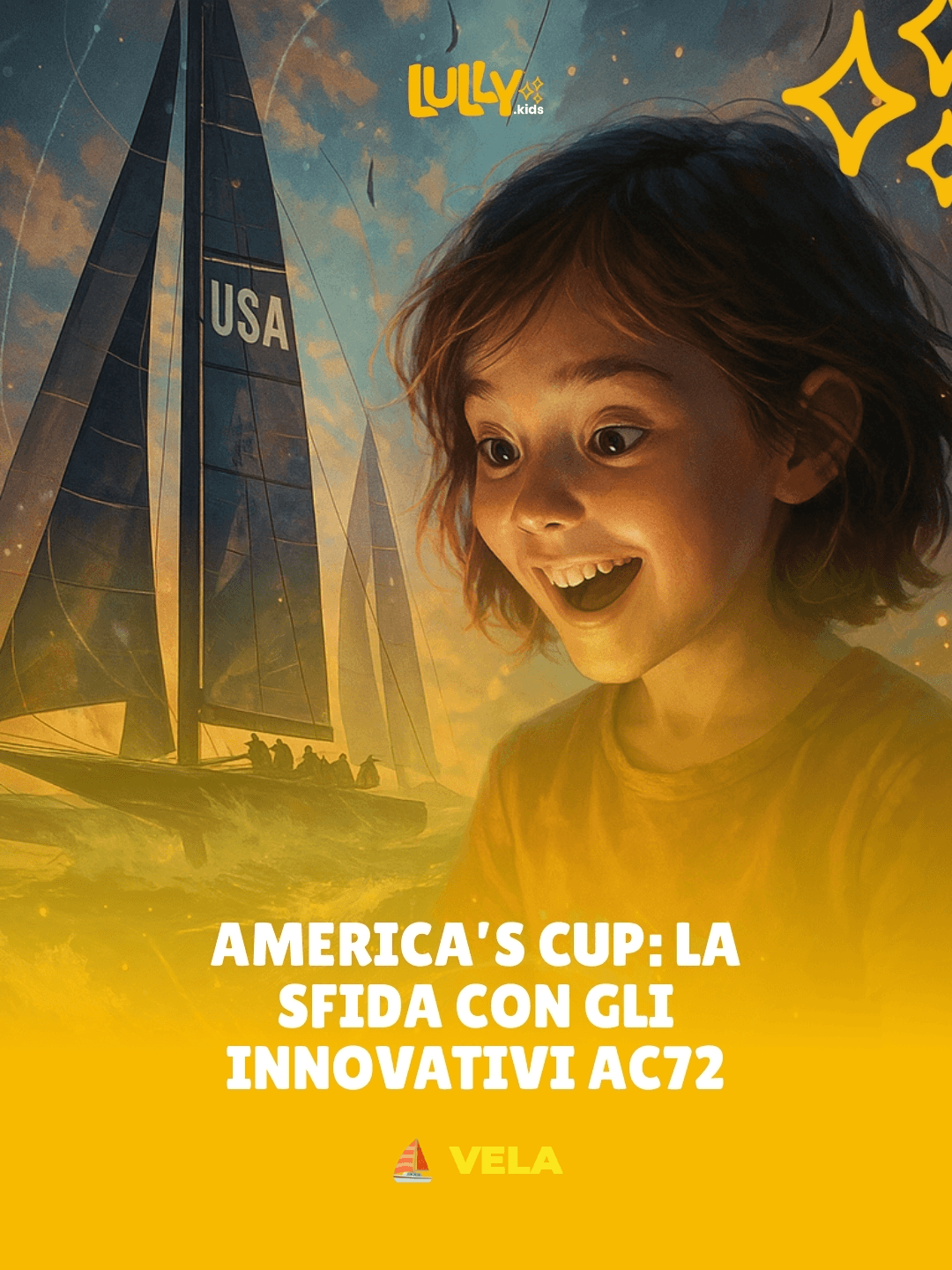 C’era una volta un giovane velista di nome Marco, che sognava di partecipare alla Coppa America, una delle regate più famose e difficili del mondo. Marco era affascinato dagli AC72, barche veloci e innovativi che sfidavano il vento e le onde come giganti del mare.